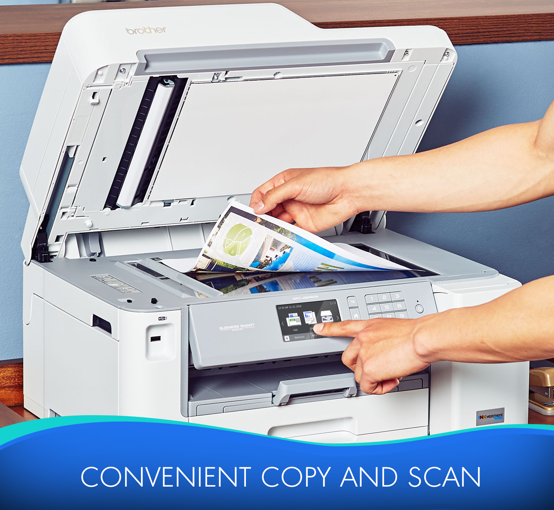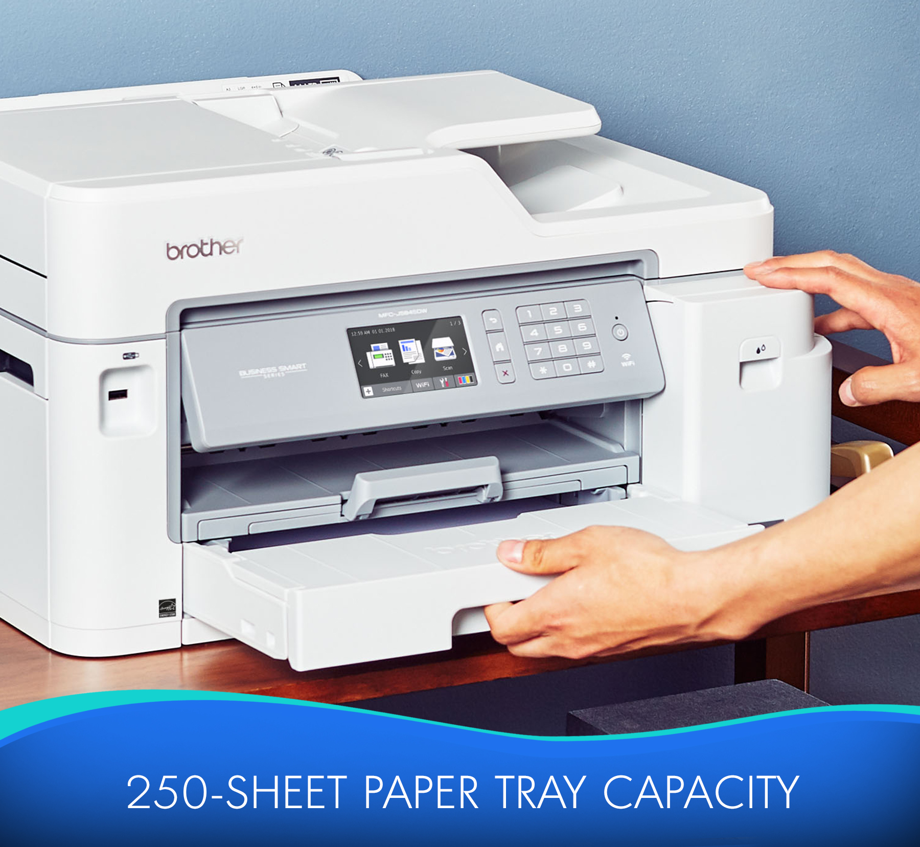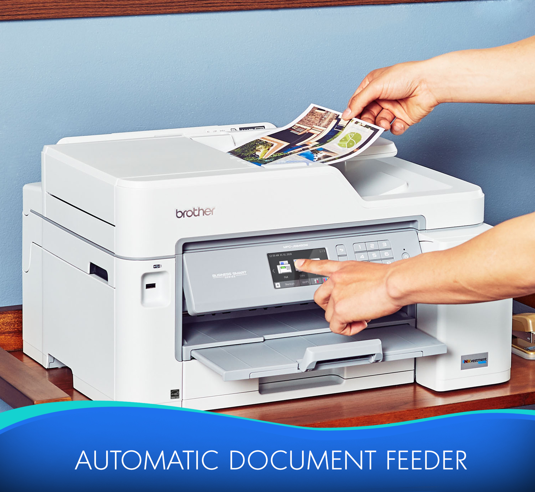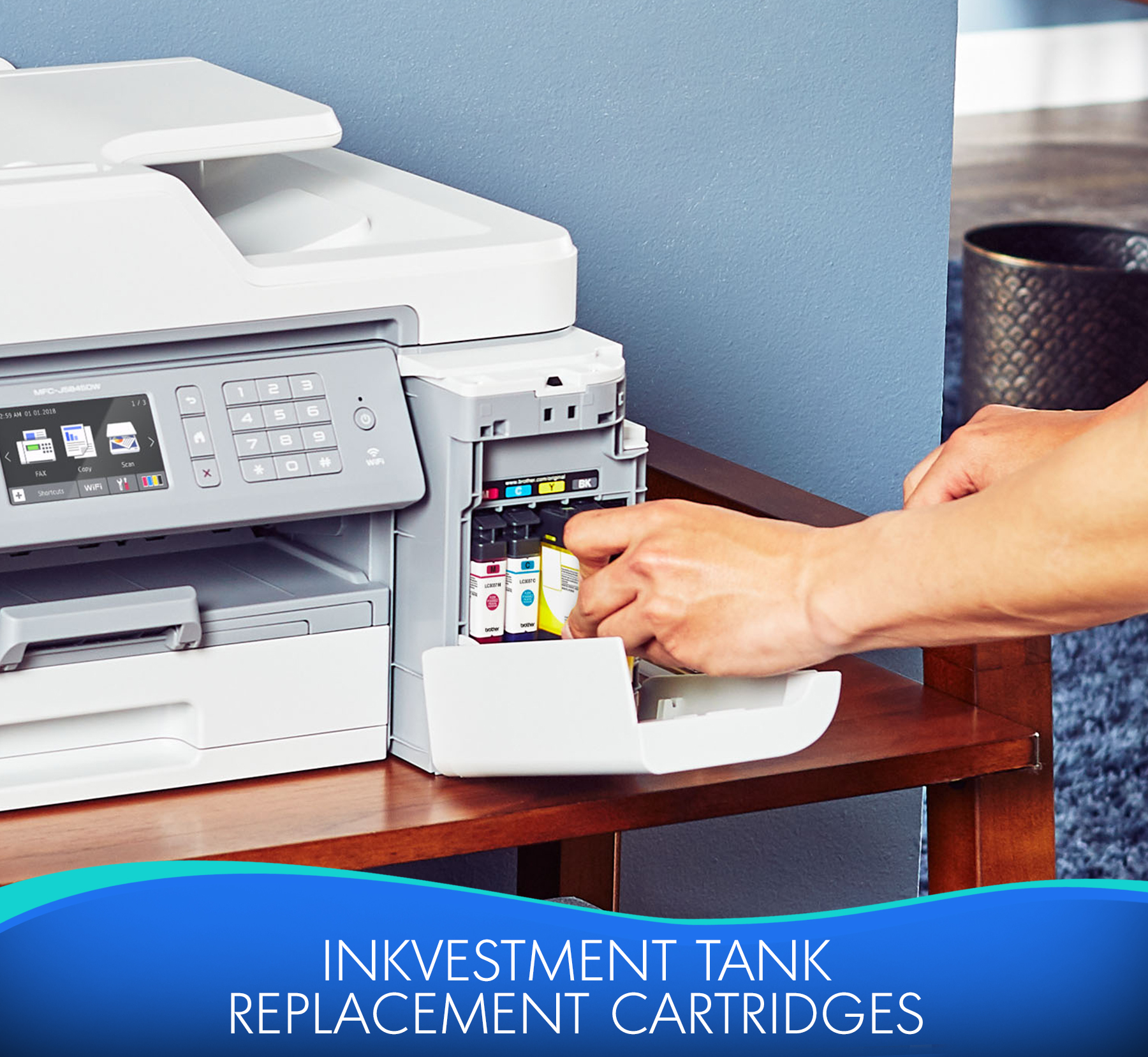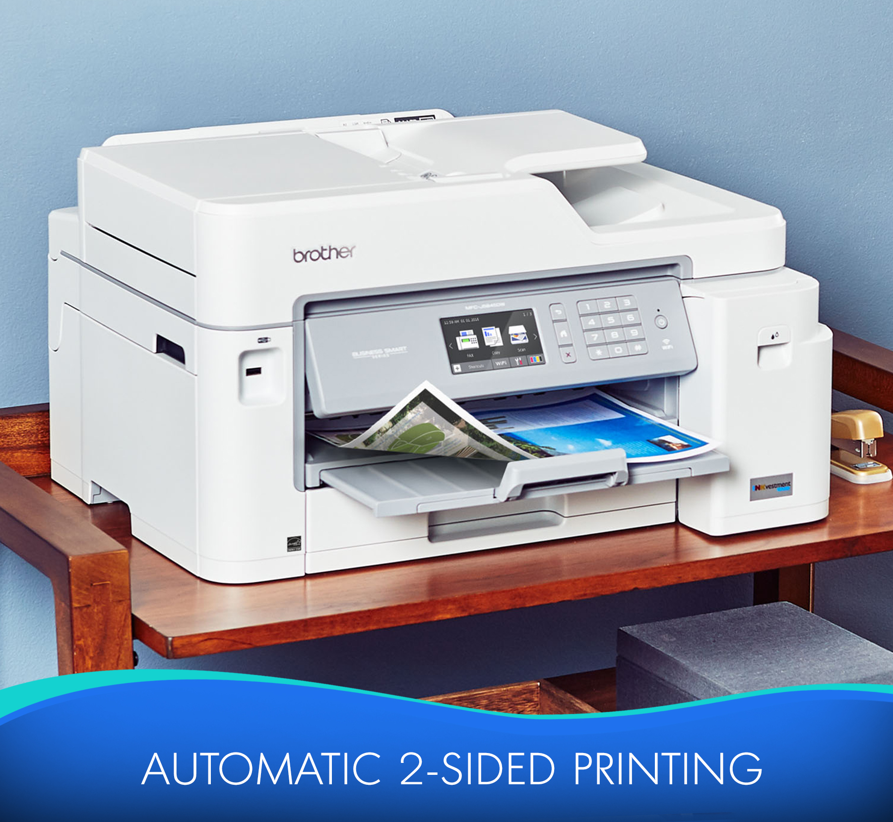 Brother MFC-J5845DW INKvestment Tank Color Inkjet All-in-One Printer with Wireless, Duplex Printing and Up to 1-Year of Ink In-box - Copier/Fax/Printer/Scanner - 35 ppm Mono/27 ppm Color Print - 4800 x 1200 dpi Print - Automatic Duplex Print - Upto 30000 Pages Monthly - 350 sheets Input - Color Scanner - 1200 dpi Optical Scan - Color Fax - Ethernet - Wireless LAN - Mopria - USB - 1 Each - For Plain Paper Print