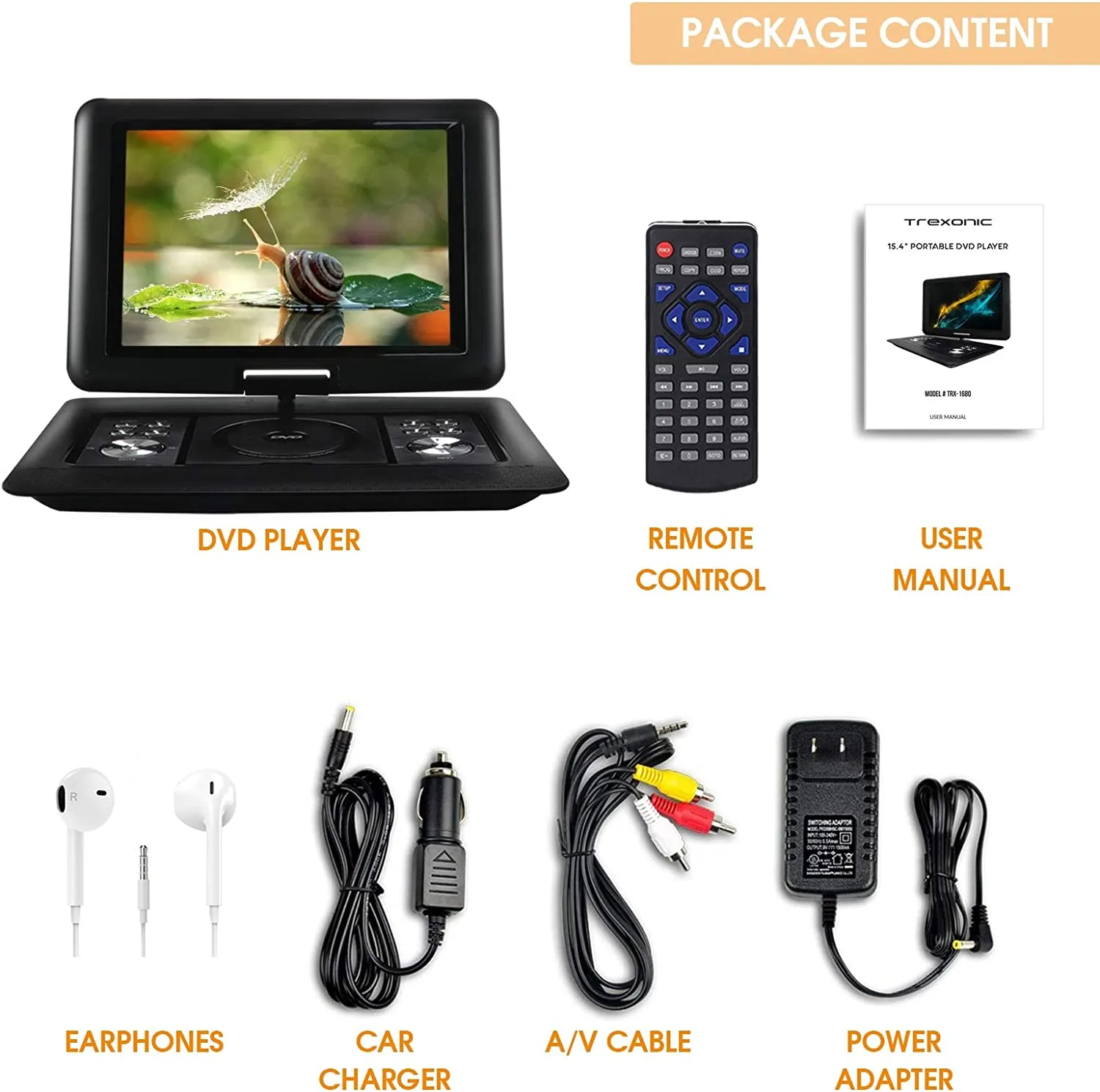 Trexonic 15.4 Inch Portable DVD Player with TFT-LCD Screen and HDMI/USB/SD/AV Inputs