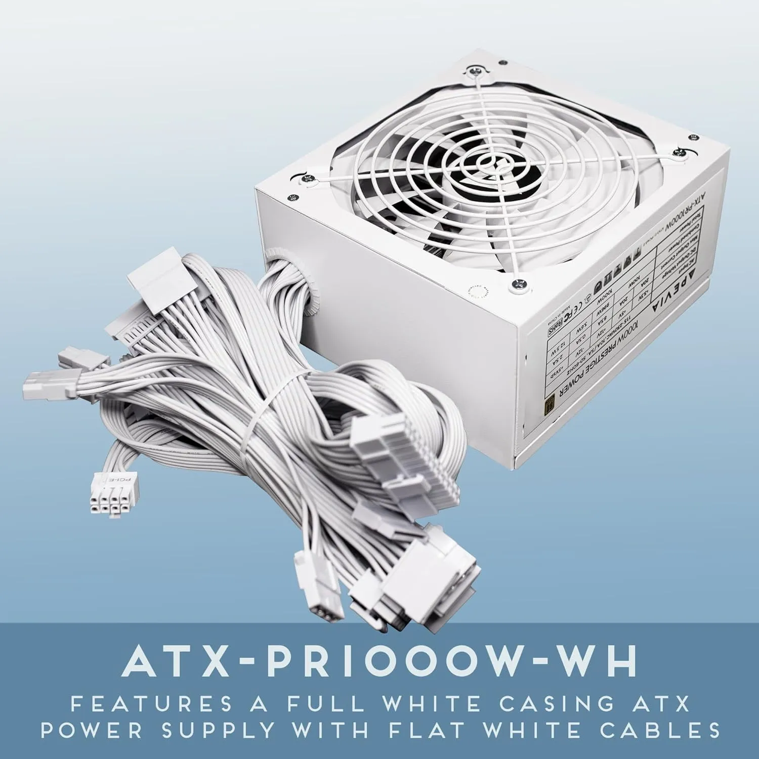 Apevia ATX-PR1000W-WH PCIE 5.0 & ATX 3.0 Prestige 1000W 80+ Gold Rated, PCIE 5.0 / Gen 5 12VHPWR Connector, Active PFC ATX Gaming Power Supply White